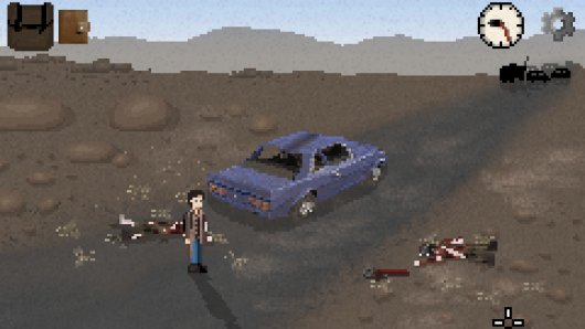 The art and sound design have a minimalist flavor. The pixel graphics give off an early on- to mid-nineties vibe, the brown-based color palette working for a dry out world at present dominated by desert and dust. The soundtrack is simple but haunting, a female person vocalization bustling along to the tune with a melancholy deserving of the end of the world. Sound furnishings like the echo of a stride or a creak of a door add together to the emptiness of the environment.